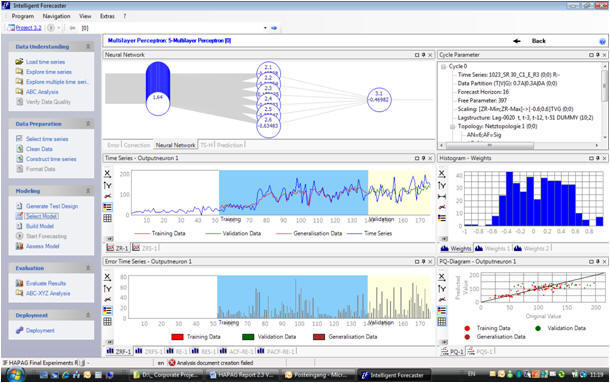 Our flagship product - the forecasting software 'Intelligent Forecaster' - offers state-of-the-art forecasting methods of artificial intelligence incl. neural networks and the novel method class of support vector regression in addition to statistical benchmark methods (e.g. Exponential Smoothing etc) and integrates all functionality of the forecasting process for practitioner experts - including full automation for beginners: